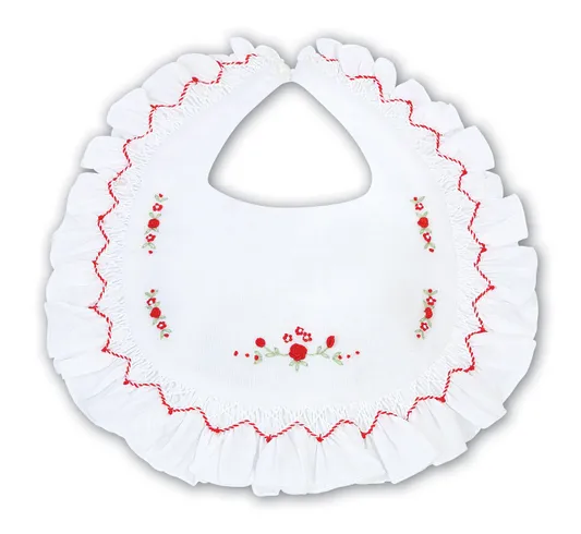 Smocked Detail Bib (Pink & White/Red)
