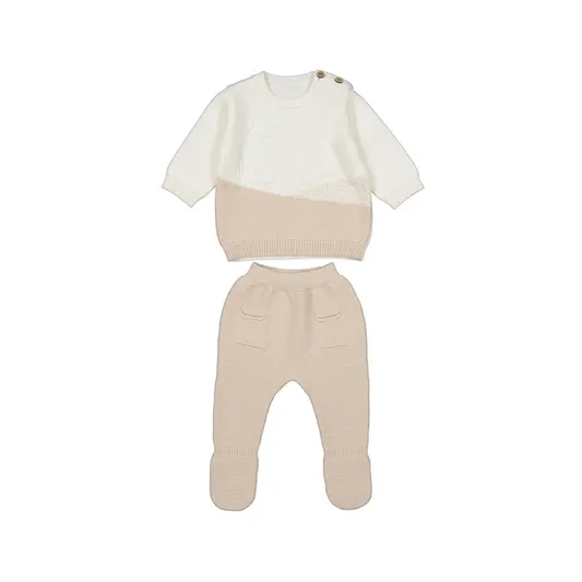 Pretty Originals Baby Romper Set in Baby Blue and Beige