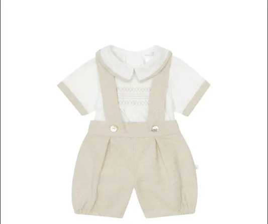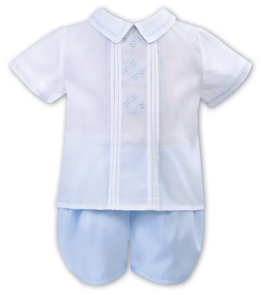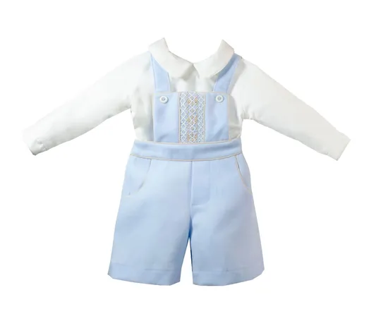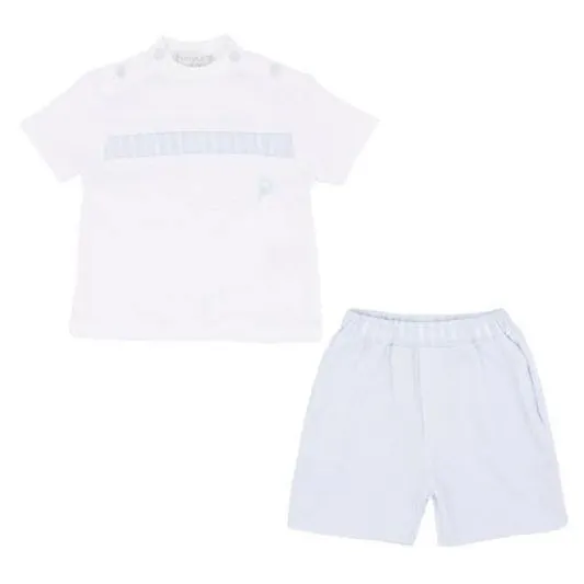 Pretty Originals Boys Short Set in Baby Blue and Beige