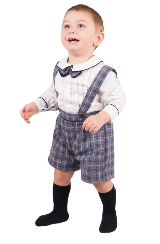 Baby Boys Grey Elegant Chess Checked Two Piece