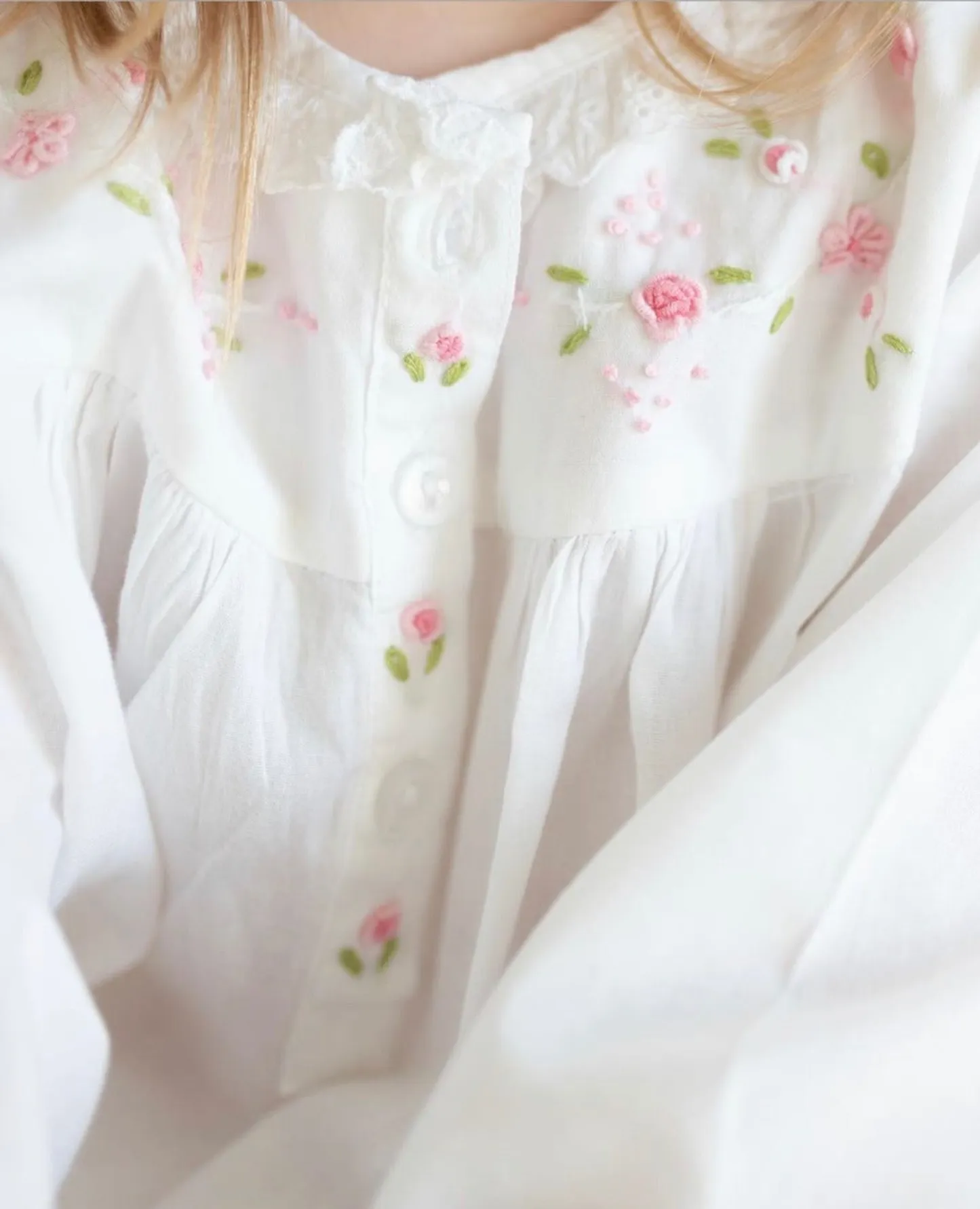 Embroidery: Hand Embroidered Soft Pink Roses on Bodice