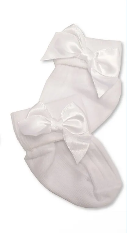 White Satin Bow Socks 0-3M